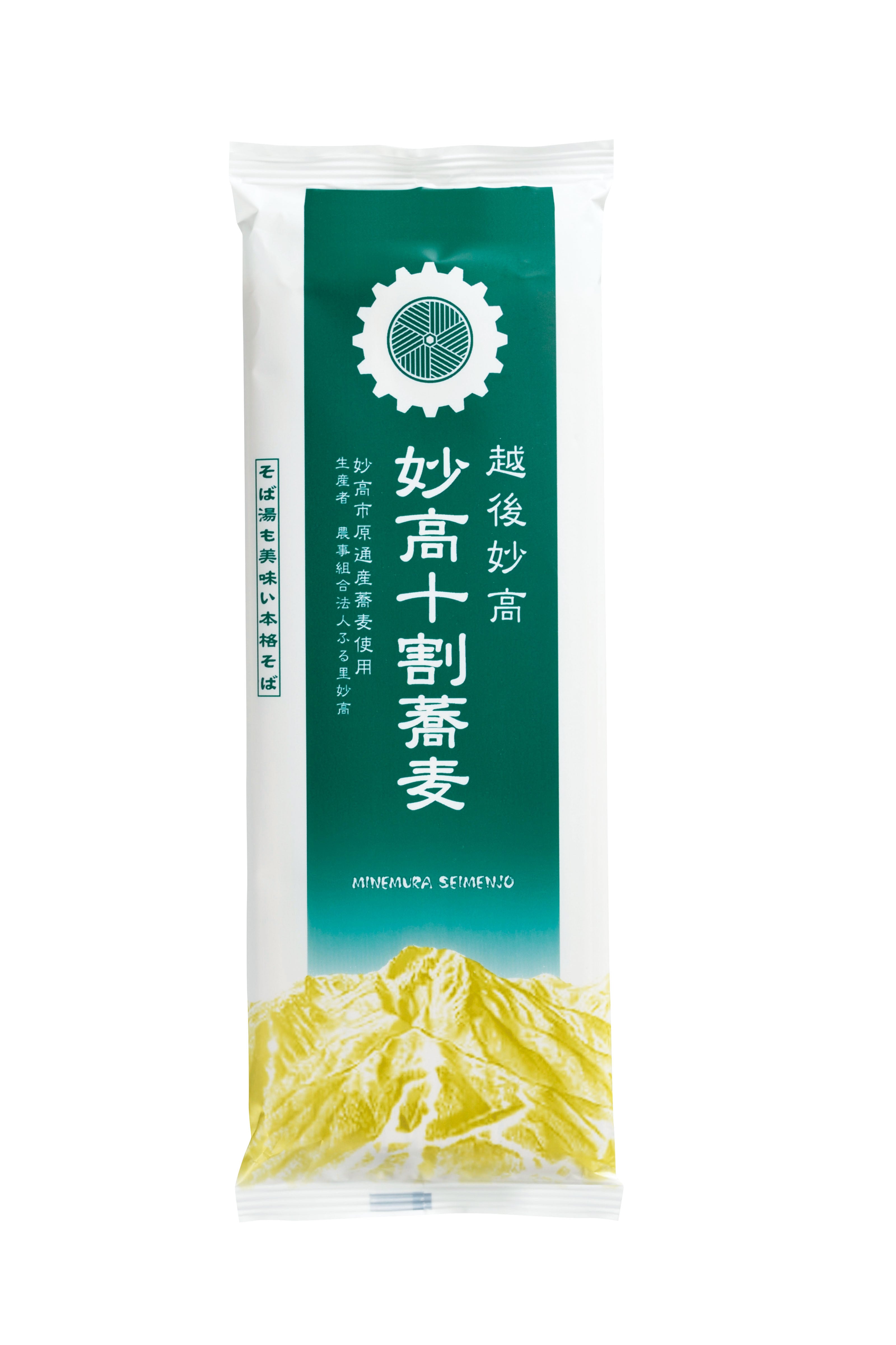 新潟県妙高市原通地区の農事組合法人ふるさと妙高との契約栽培による在来種の玄蕎麦のみを使用し、特殊な製粉技術と製麺方法により製造された『つなぎ』を使用しない本物の十割蕎麦です。